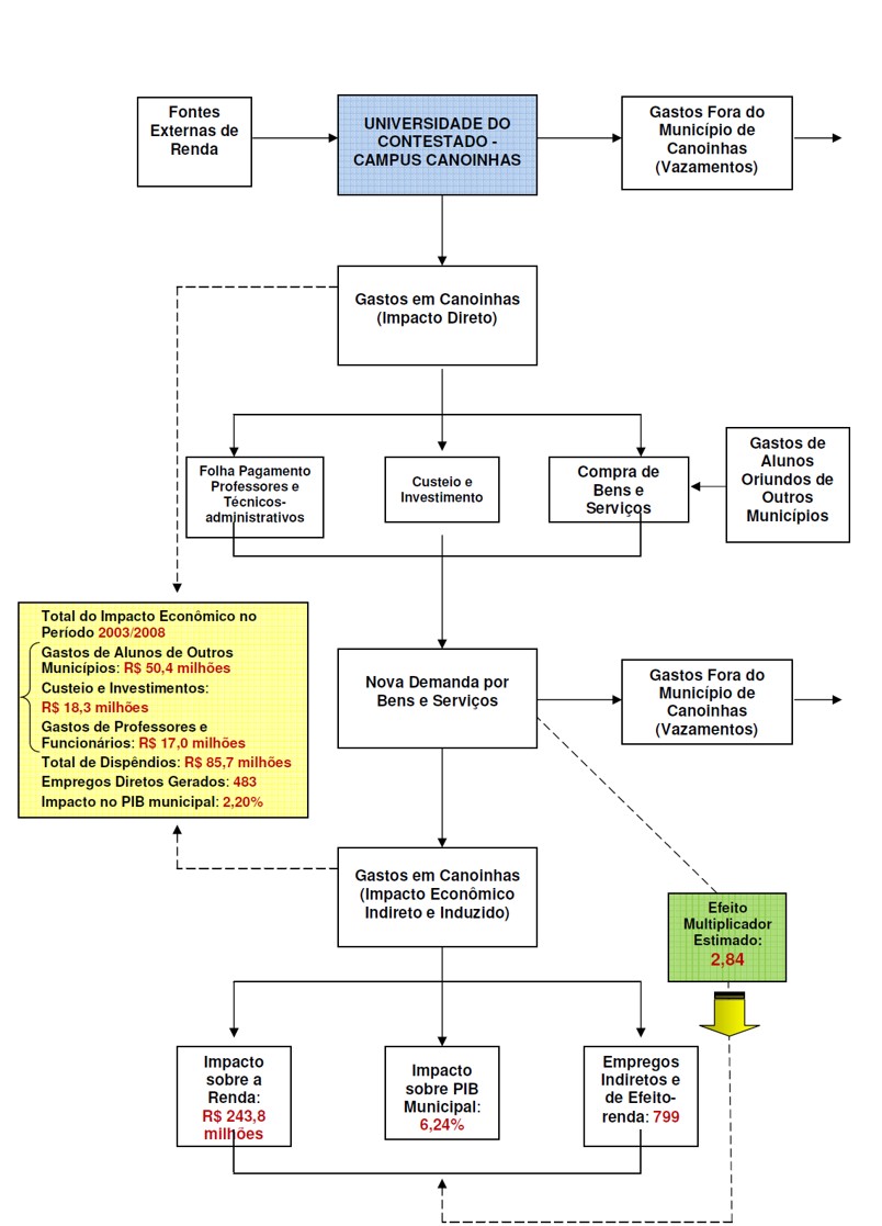impactos econômicos, desenvolvimento local, multiplicadores keynesianos, Universidade do Contestado (UnC).Resumo