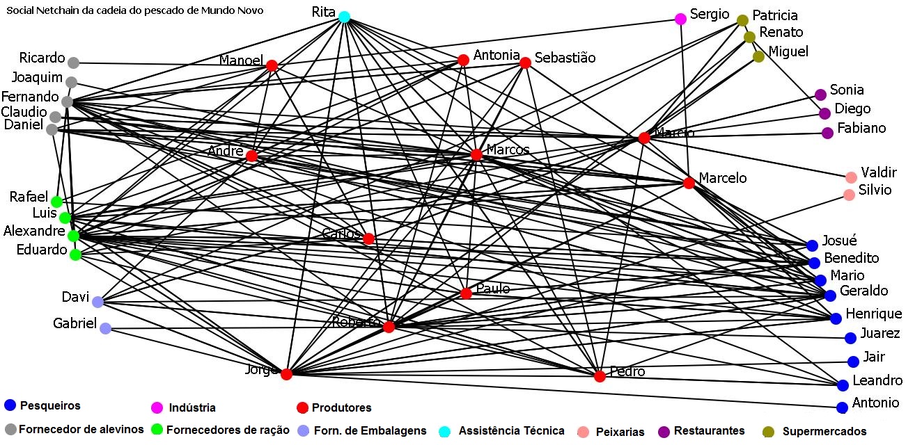 Este estudo buscou analisar a configuração da Social Netchain da cadeia do pescado do município de Mundo Novo, MS, através da metodologia de análise de redes sociais. Os resultados sugerem que a Social Netchain possui baixos índices de coesão e fragilidade quanto à saída de atores centrais, podendo nesses casos ocasionar o rompimento da rede. Além disso, é possível relacionar os índices de confiança entre os agentes com a posição que ocupa na rede.