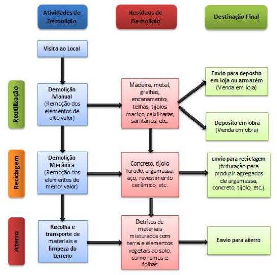 demolição tradicional, demolição seletiva, desconstrução, gestão de resíduos de demolição, reutilização.