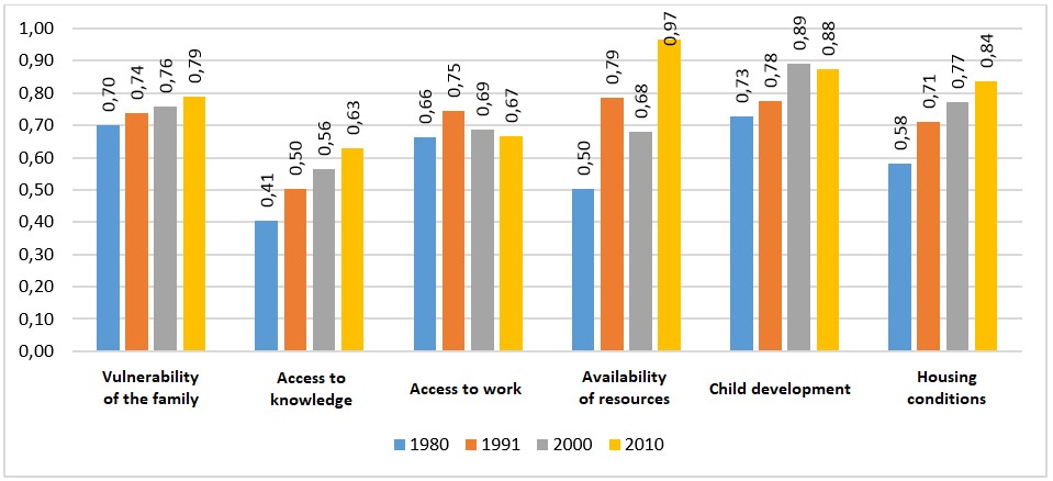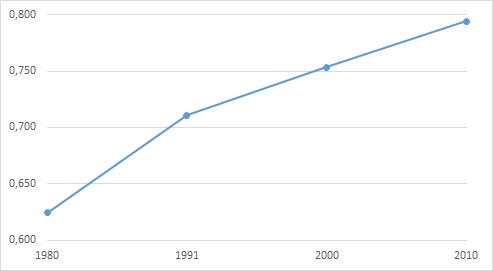 Family Development Index (IDF) in the municipality of Viçosa, evolution between 1980 and 2010
