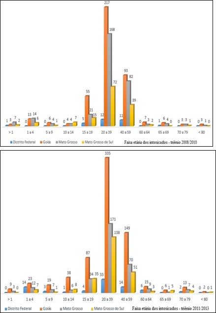 HUNGARO, A. A.; CORREIA, L. M.; SILVINO, M. C. S.; ROCHA, S. M.; MARTINS, B. F.; OLIVEIRA, M. L. F. Intoxicações por agrotóxicos: registros de um serviço sentinela de assistência toxicológica. Ciência, Cuidado e Saúde, Maringá, PR, v. 14, n. 3, p. 1362-9, jul./set. 2015.