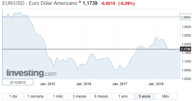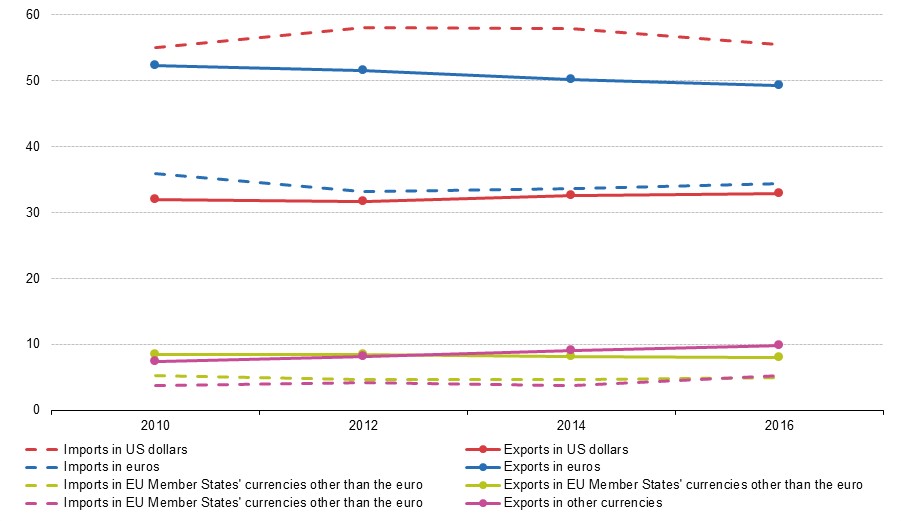 Eurostat. Extra-EU trade by invoicing currency. Disponível em: https://goo.gl/Fkvaqq. Acesso em: 11 set. 2018.